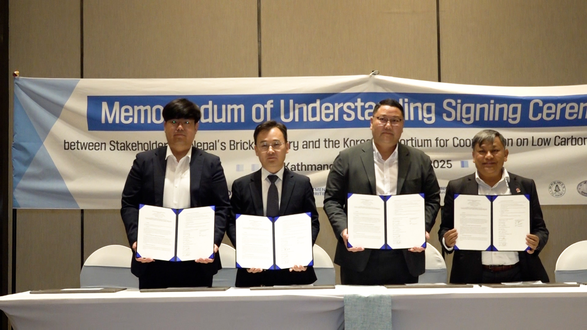 काठमाडौं । नेपालका ईटा उद्योगहरुलाई व्यवस्थित र वातावरणमैत्री बनाउने उद्देश्यले कोरिया र नेपालका विभिन्न संस्थाहरुबीच समझदारी पत्रमा हस्ताक्षर भएको छ । रिजर्भ कार्बन कम्पनी लिमिटेड, कोरिया वेस्टर्न पावर कम्पनी लिमिटेड, एनएच इन्भेस्टमेन्ट एण्ड सेक्युरिटीज कम्पनी लिमिटेड, आइएनएनओ सिएसआर कम्पनी �. . .