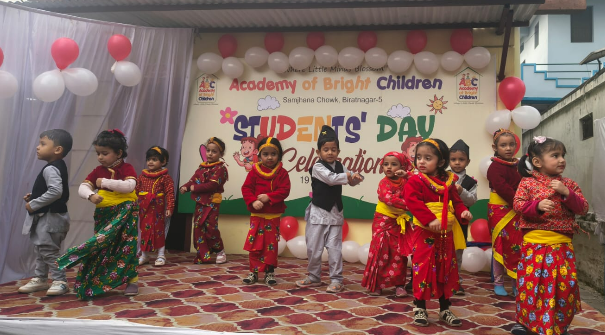 विराटनगर पुष १९ , विराटनगर–५ स्थित एबिसी स्कुलमा विविध कार्यक्रमसहित विद्यार्थी दिवस मनाइएको छ। कार्यक्रममा विद्यार्थीहरूले गीत गाए, विभिन्न गीतमा नृत्य प्रस्तुत गरे तथा अभिभावकको आँखा खोलिदिने सन्देशमूलक नाटक मञ्चन गरे। नाटकमा मोबाइल प्रयोगका कारण आमा–बुवाले आफ्ना बच्चालाई पर्याप्त समय दिन नसक. . .