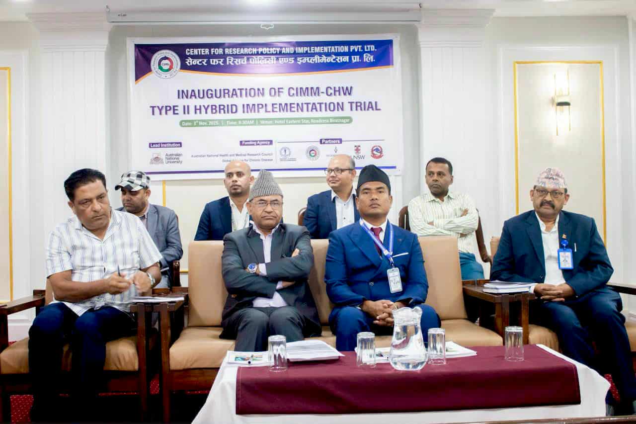 विराटनगर । सेन्टर फर रिसर्च, पोलिसी एन्ड इम्प्लिमेन्टेसन प्रा. लि.को आयोजना तथा कोशी प्रदेश स्वास्थ्य मन्त्रालयको सहकार्यमा “बहु दीर्घकालीन रोग सम्बन्धी टाइप–२ इम्प्लिमेन्टेसन ट्रायल अध्ययन” कार्यक्रमको औपचारिक उद्घाटन विराटनगरस्थित होटल इस्टर्न स्टारमा सम्पन्न भएको छ। कार्यक्रमका प्रमुख अति�. . .