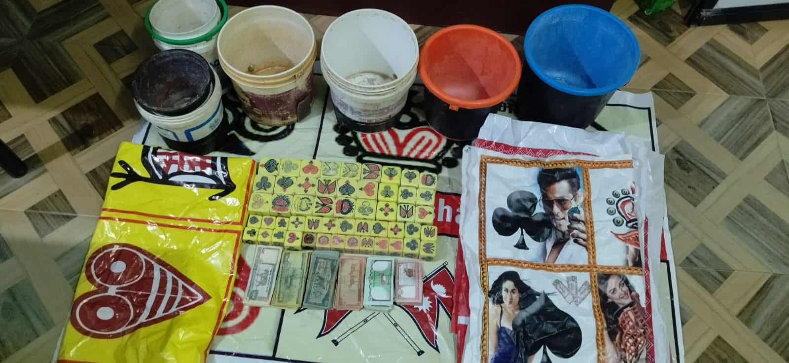 विराटनगर । मोरङ प्रहरीले विराटनगर महानगरपालिकाको विभिन्न स्थानहरूबाट डाइस लङ्गुरबुर्जा सहित नगद र खेलमा प्रयोग हुने सामग्रीहरू नियन्त्रणमा लिएको छ। जिल्ला प्रहरी कार्यालय मोरङका अनुसार असोज १० गते साँझ खटिएको विशेष टोलीले विराटनगर क्षेत्रका मुख्य बजार तथा चोक आसपास खेलिरहेको अवस्थामा ११ सेट ड�. . .