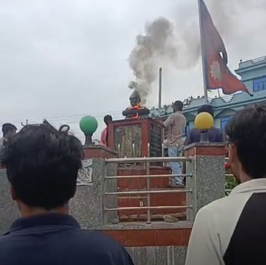 विराटनगर । विराटनगरमा सरकार विरुद्ध प्रदर्शनमा उत्रिएको जेनजी युवा समूहले विराटनगर महानगरपालिकाको गेटको राष्ट्रिय झण्डा फेरिदिएका छन् । स्थानीय सरकारका प्रमुखसँग समेत आक्रोश पोख्दै नाराबाजी गरेका उनीहरुले गेटमा राखिएको राष्ट्रिय झण्डा फेरिदिएका हुन् । विराटनगरमा विभिन्न स्थानमा विरोध प्रदर्. . .
