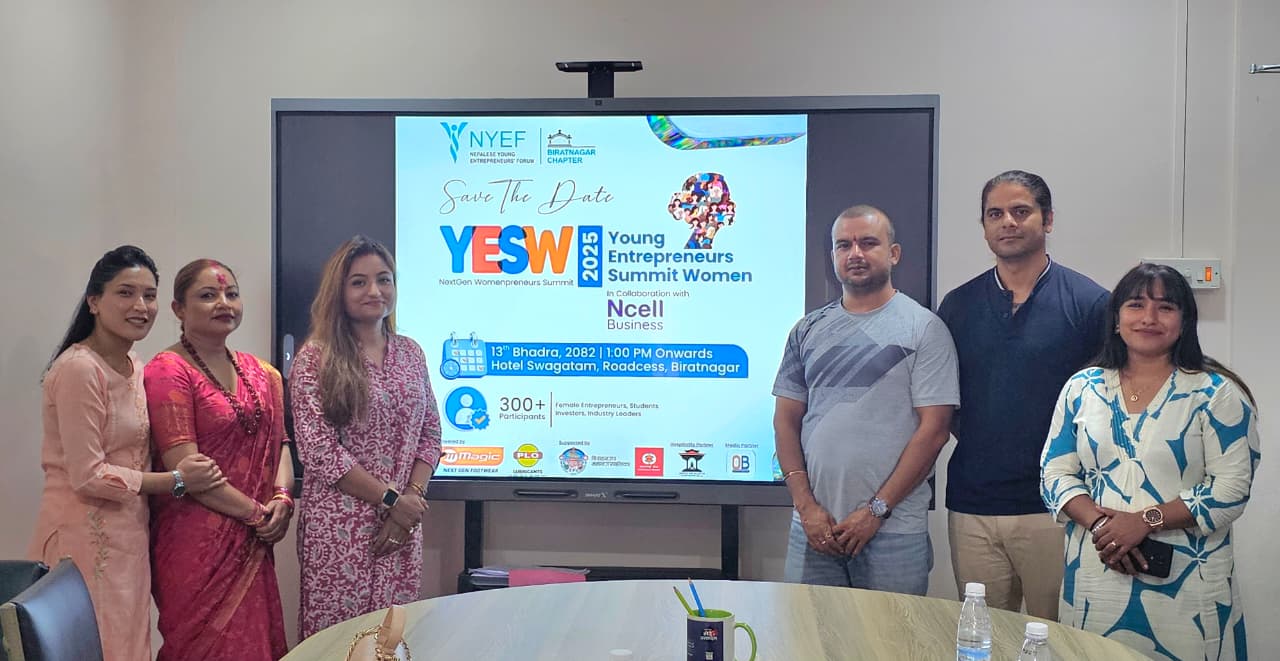 विराटनगर, भाद्र ११ नेपाल युवा उद्यमी मञ्च विराटनगरको आयोजनामा विराटनगरमा महिला उद्यमी समिट हुने भएको छ। कार्यक्रम यही भाद्र १३ गते विराटनगरस्थित होटल स्वागतममा दिउँसो १ बजेदेखि सुरु हुनेछ। कार्यक्रम संयोजक अंकिता गिरीका अनुसार समिटमा महिला उद्यमशीलतालाई प्रोत्साहन गर्ने उद्देश्यले आयोजना गरिए. . .