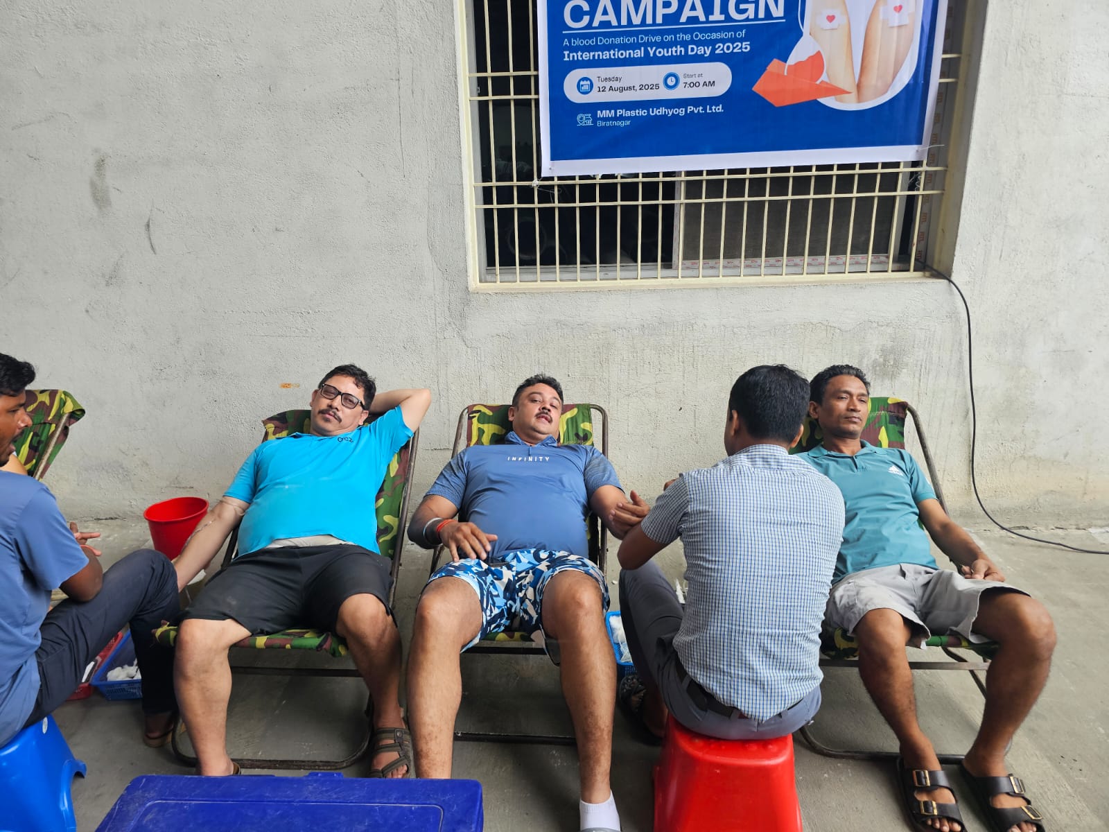 विराटनगर, साउन २७, नेपाल युवा उद्यमी मञ्च विराटनगरको आयोजनामा आज अन्तर्राष्ट्रिय युवा दिवसको अवसरमा रक्तदान कार्यक्रम सम्पन्न भएको छ। विराटनगरस्थित एमएम प्लास्टिक फ्याक्ट्रीमा आयोजित कार्यक्रममा ५५ जनाले रक्तदान गरेका थिए। मञ्चले प्रत्येक अन्तर्राष्ट्रिय युवा दिवसमा सामाजिक उत्तरदायित्वअन्त. . .