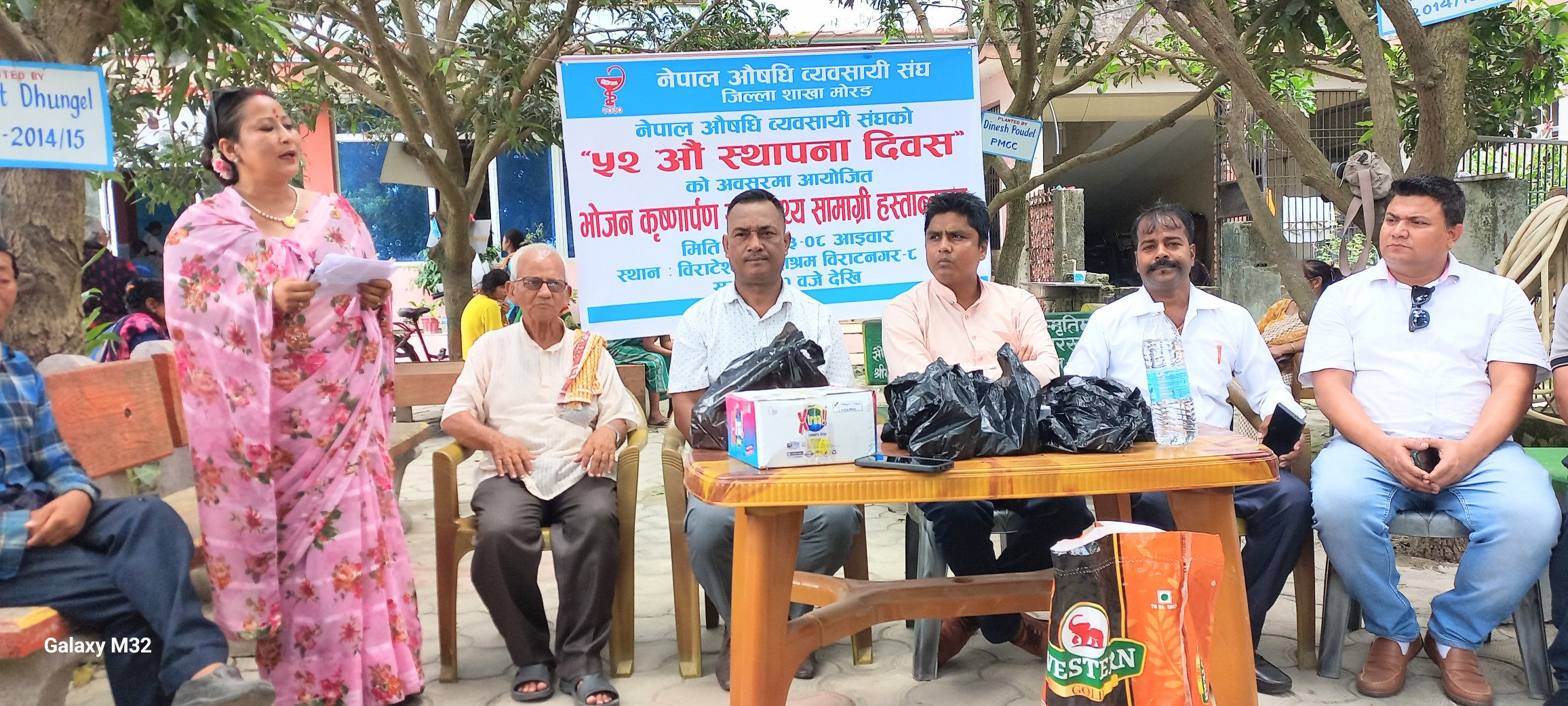 विराटनगर । नेपाल औषधि व्यवसायी संघको ५२ औं स्थापना दिवसको शुभ अवसर पारेर विराटनगर ८ मा रहेको विराटेश्वर वृद्धाश्रममा स्वास्थ्य सामाग्री वितरण र भोजन कार्यक्रम गरेको छ । नेपाल औषधि व्यवसायी संघ मोरङ शाखाले आयोजना गरेको सप्ताहव्यापी कार्यक्रमको पाँचौं दिनको कार्यक्रम अन्तर्गत आइतबार विराटेश्वर वृ�. . .