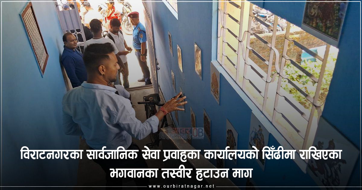 विराटनगर । सार्वजानिक सेवा प्रवाहका कार्यालयहरुका सिँढीका भित्तामा भगवानका तस्वीर टाँसिने प्रचलन बढ्यो । कार्यालयलाई सफा राख्न भगवानका तस्वीर राखेपनि कसै न कसैले पिच्च थुक्ने अनि त्यसपछि थपिदैं जान थाल्यो । जसले कार्यालय त फोहोर भयो, तर धार्मिक रुपमा आस्थावानहरुको मर्म र भावनामा त्यसले झन् चोट पु¥�. . .