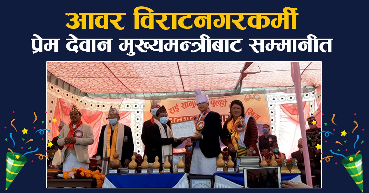 विराटनगर । किरात राई यायोक्खा महानगर कार्य समिति विराटनगरले आयोजना गरेको उधौली पर्वको अवसरमा आवर विराटनगरकर्मी प्रेम देवान सम्मानित भएका छन् । लामो समयदेखी किराँत राई यायोक्खा महानगर कार्य समितिको सेवा कार्यमा सकृय रुपले संलग्न भई समाचार संकलन गरी सधै सस्थालाई हौसला प्रदान गरेको भन्दै आवर विराटनग�. . .