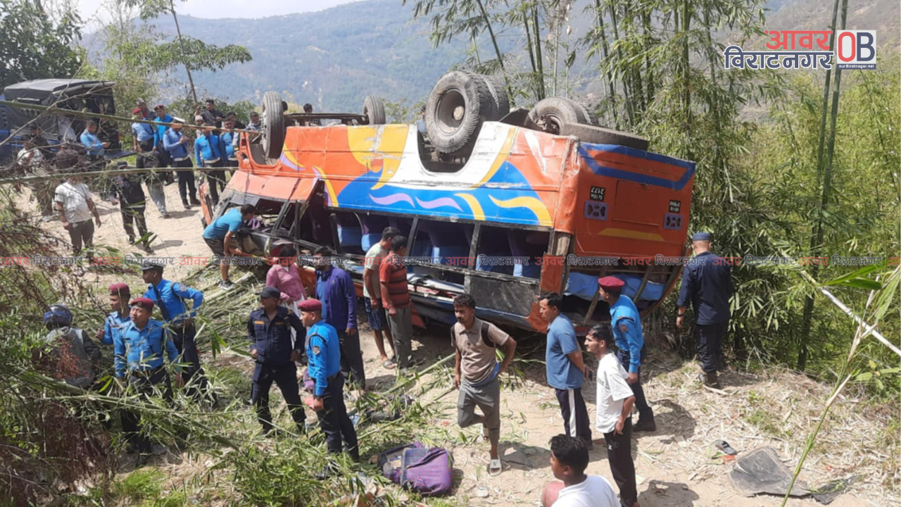 विराटनगर । धराटबाट पहाडी ईलाका भोजपुर जाँदै गरेको यात्रुवाहक बस दुर्घटना हुदाँ एकको मृत्यु १३ जना घाईते भएका छन् । आज(सोमबार) बिहान धरानबाट भोजपुरका लागि छुटेको बस धनकुटा नगरपालीका ६ स्थित गोठगाँउमा दुर्घटनामा परेको थियो । बस करिब ५० मिटर तल खस्दा बसमा सवार धनकुटा ६ कि ७३ वर्षीया कृष्णा कुमारी राई भ. . .