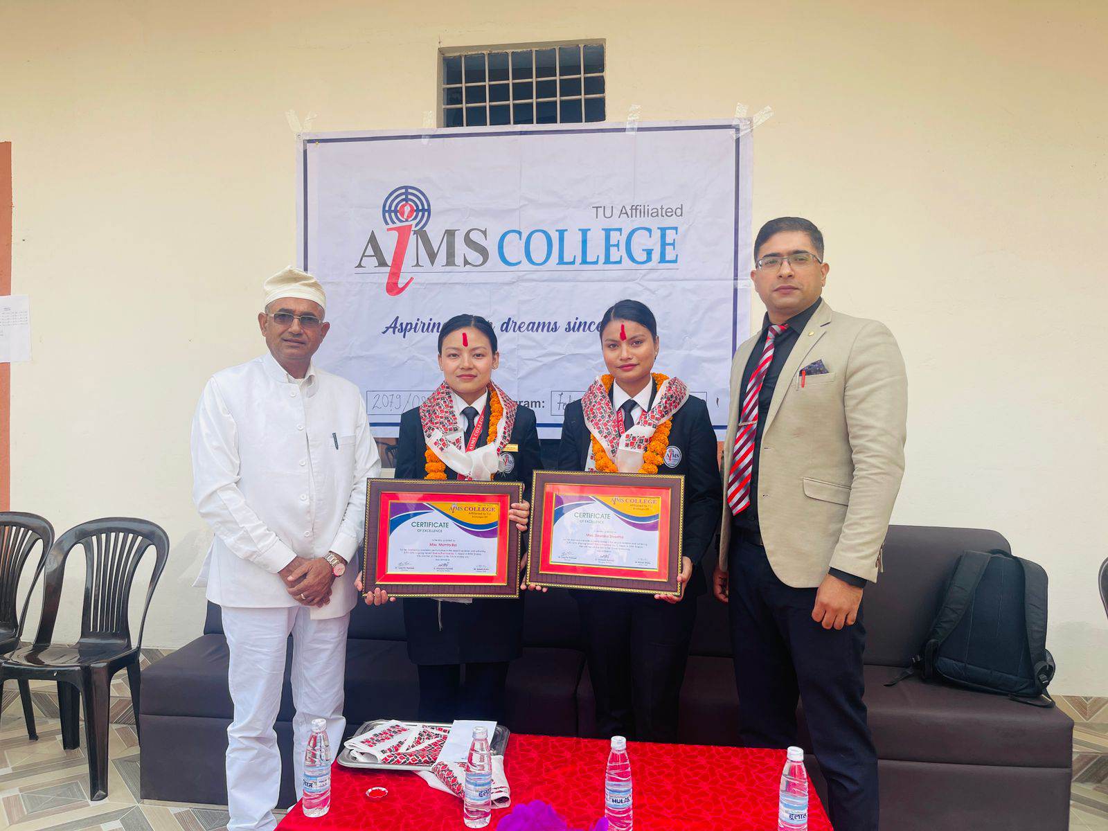 विराटनगर । एम्स कलेज विराटनगरमा बि.एच.एम.मा अध्ययनरत दुईजना छात्रा देवका श्रेष्ठ र ममता राई ३.९२ जीपीएमा उत्तिर्ण भएका छन् । बि.एच.एम. दोस्रो सेमेस्टरतर्फ दुवैजना छात्राले प्रदेश १ मा उत्कृष्ट नम्बर प्राप्त गर्न सफल भएको कलेज प्रशासनले जानकारी दिइएको हो । उत्कृष्ट नतिजा ल्याउन सफल विद्यार्थीलाई कलेज�. . .